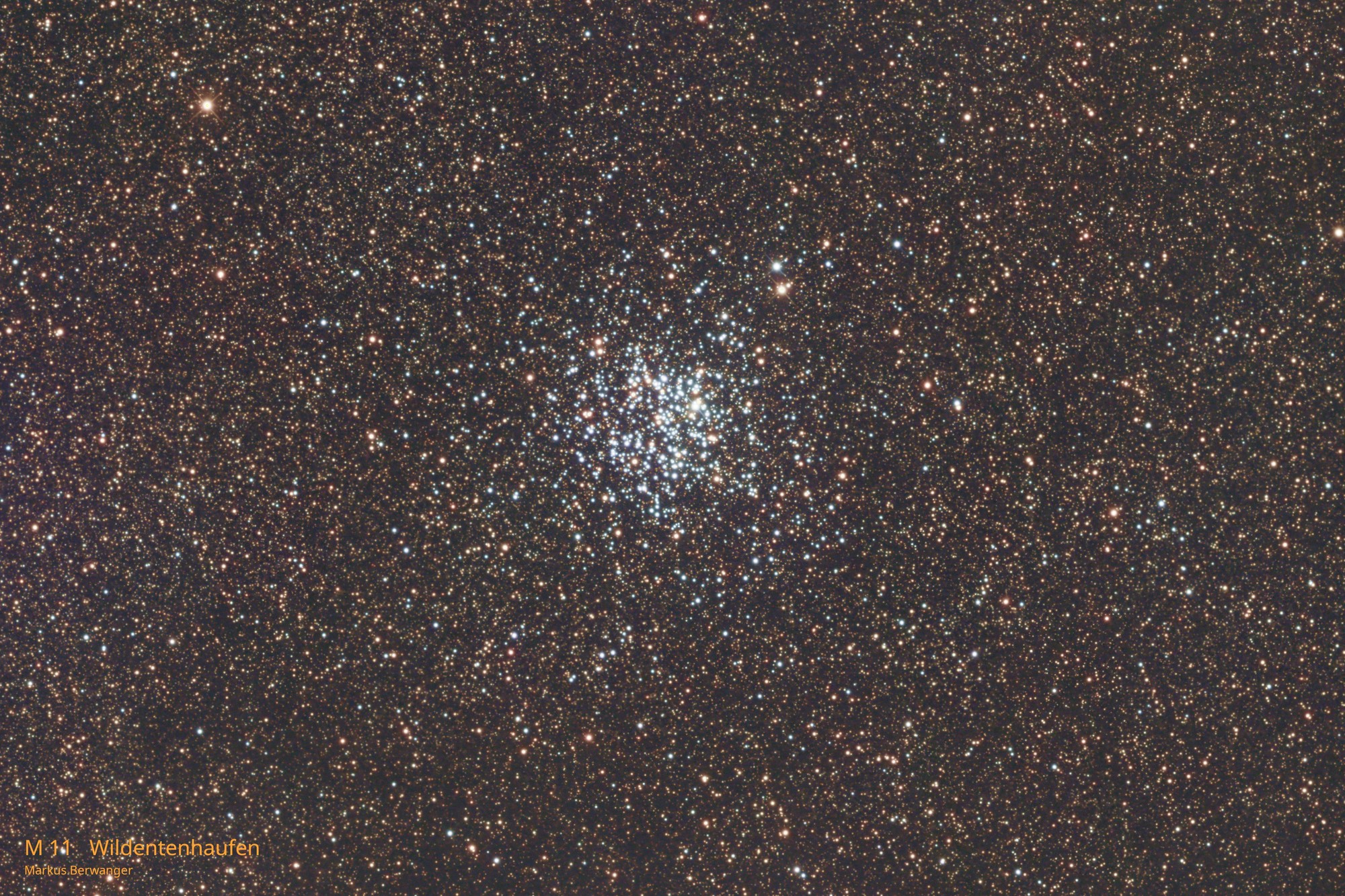 Der Wildentenhaufen, auch als Messier 11 oder NGC 6705 bezeichnet ist ein 5,8 mag heller offener Sternhaufen mit einer Winkelausdehnung von 14′ im Sternbild Schild im Abstand von 7640 Lichtjahren.